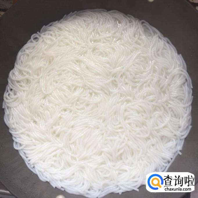 接着往锅中倒入适量的清水,带水烧开,把浸泡好的粉干丢进锅中烫5分钟。捞出沥干。