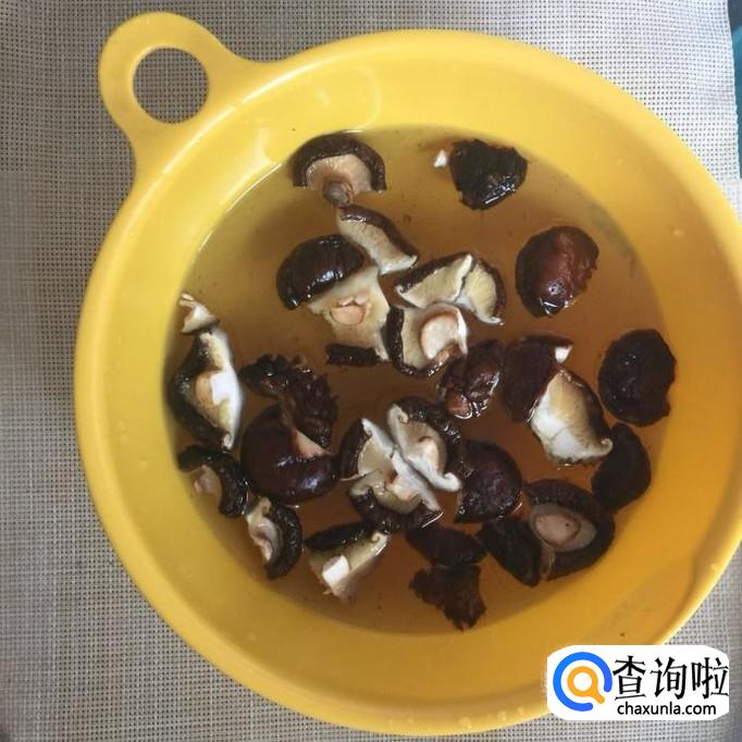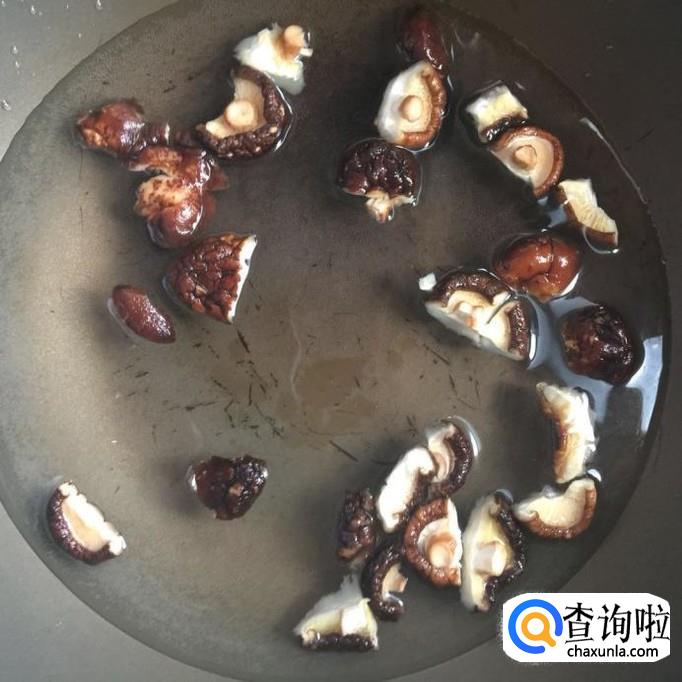 然后把香菇干放到清水中浸泡一个小时,洗干净倒入开水中,煮五分钟。