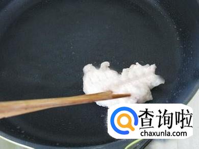 铁锅洗净,烧热,转小火,一边烧火,一边用肥肉一圈一圈的擦拭铁锅,直到铁锅全部擦过一遍。
