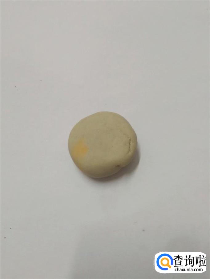先用白色彩泥团一个球,用手按扁,用来做花托。