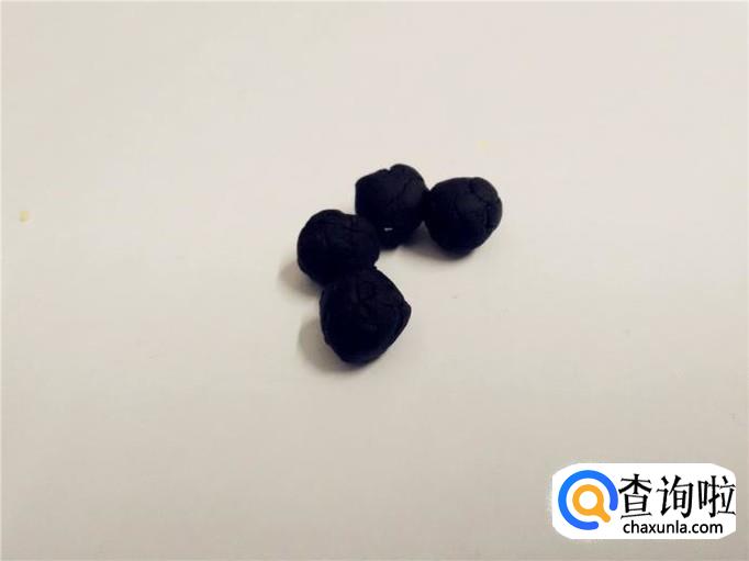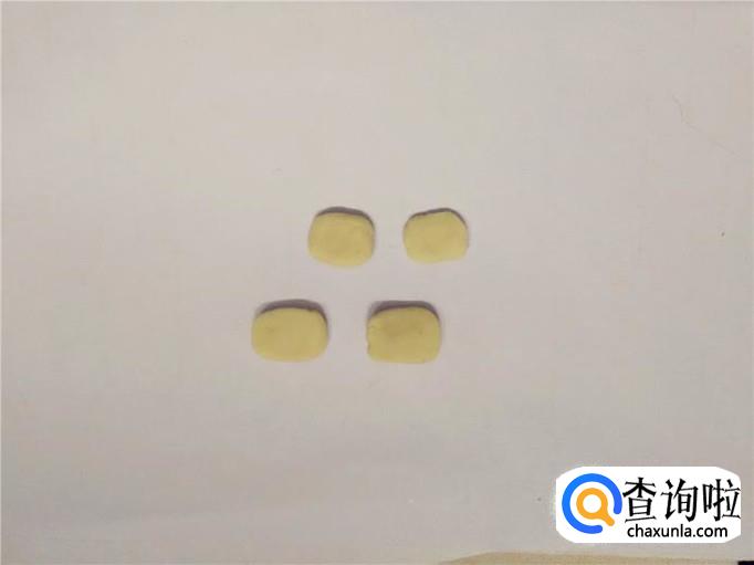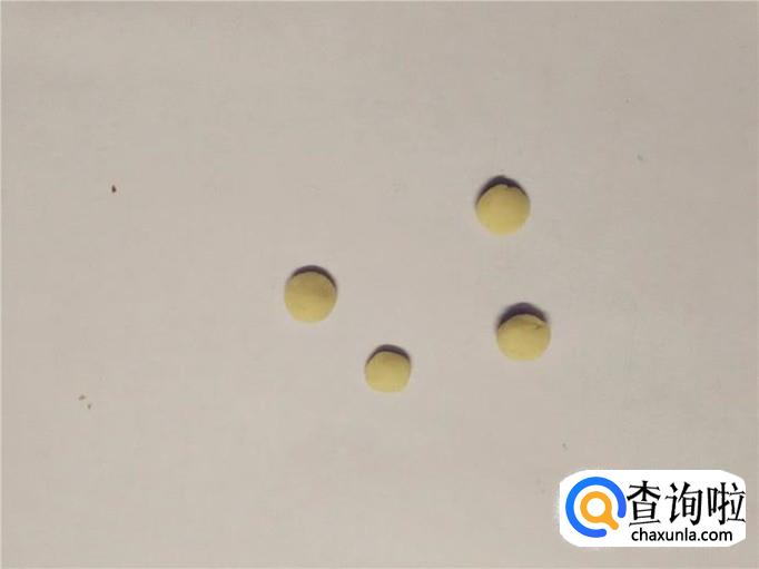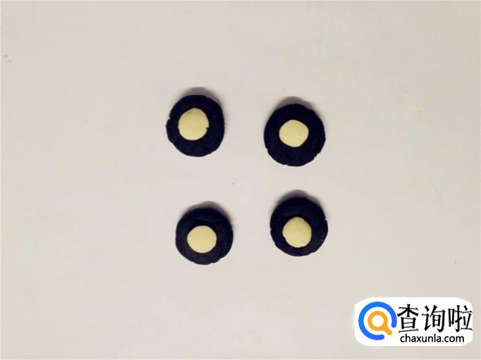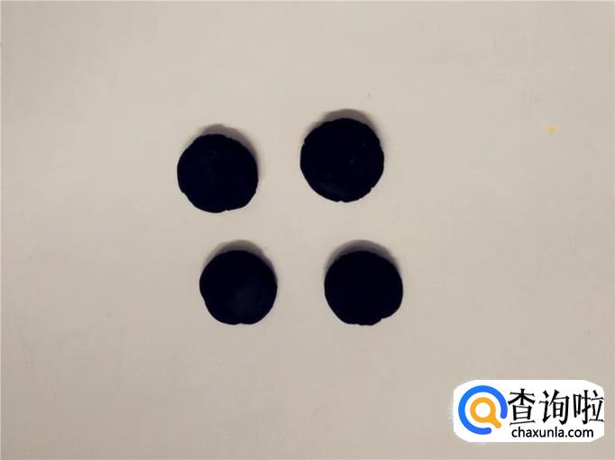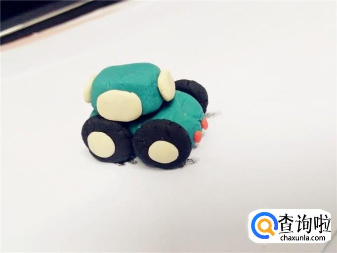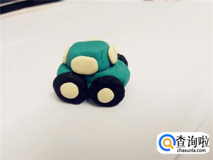 再用白色团四个小白球,然后按扁,粘在车胎上,当作车轴。