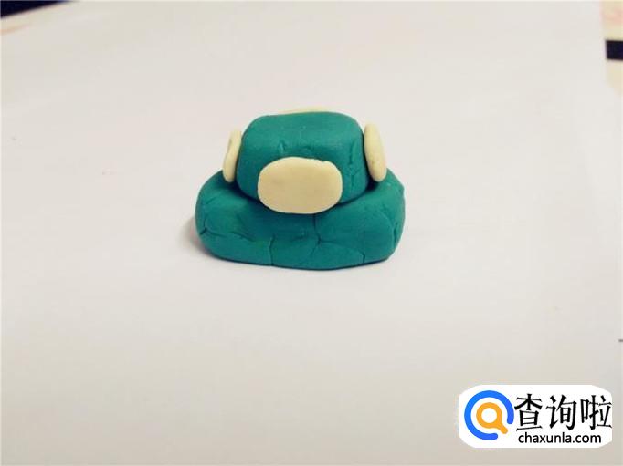 用白色捏四个白色的小方块,粘在车的四周,当作车窗上的四块玻璃。