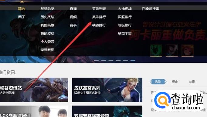 然后找到英雄排行,然后你点击进入就可以了,你会发现官网上统计的胜率情况,什么英雄在这个版本强势,就一目了然了