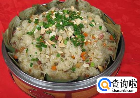 糯米饭:做法很简单,只要将糯米淘洗干净,与各种想吃的辅料放入蒸锅中一起蒸熟就可以享用 了,辅料一般可以放入花生、青豆等。