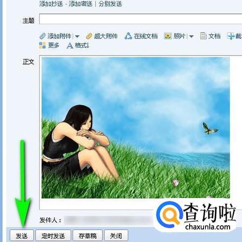 很快上传成功,那么,该图片即显示在正文中。我们再点“发送”即可。