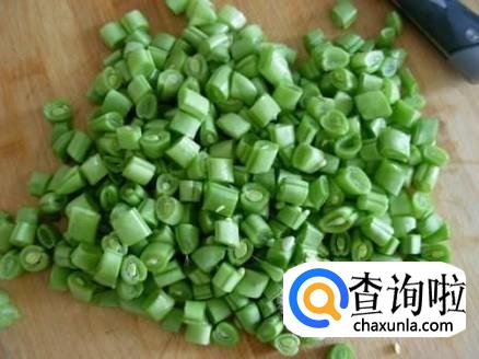 我们首先把四季豆挑去豆筋然后用清水清洗干净,然后把四季豆切成小块,尽可能的碎一些这样子的话方便做馅。