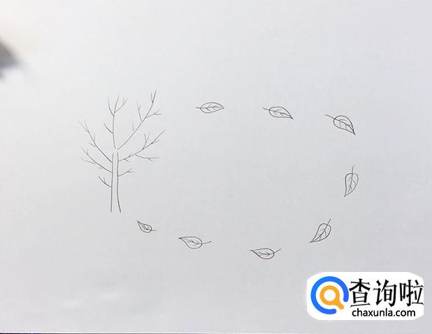 沿着树,用一片片落叶围成一个边框。