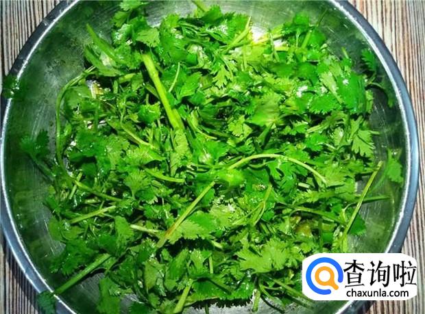 香菜清洗干净,用凉开水过一遍,然后切断,放盆子里,加入适量的花生油和酱油,搅拌均匀。