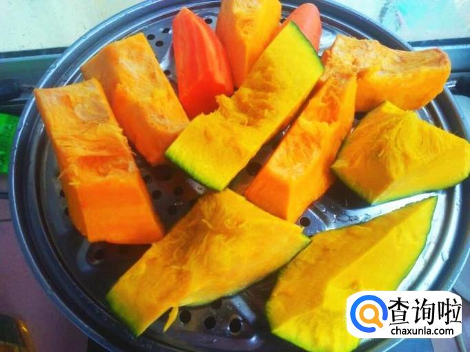 我多切了一些南瓜,反正闲着没事的时候用蜂蜜拌蒸南瓜和胡萝卜又好吃又有营养。南瓜切块,胡萝卜切块,放在蒸锅里蒸。