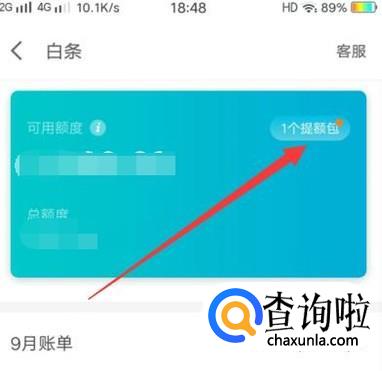 进入之后,点击图示位置的“提额包”,进入下一页面,如图所示。