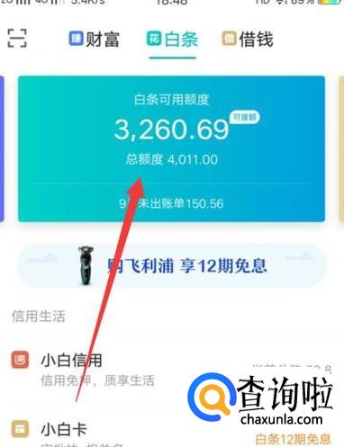 进入之后,点击“白条”,进入下一页面,如图所示。