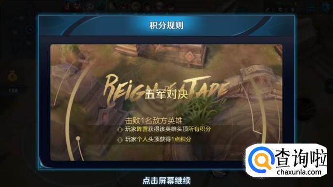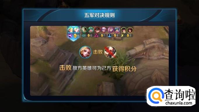 5个队伍在战场中进行对抗,击杀其他阵营的英雄可以获得积分,在8分钟后根据队伍的积分数量排名,按照第一到第五进行一些相应的奖励或者惩罚(其实就是进行一些战力分数的加减,至于这个具体有什么用?就是让别人和自己看看吧。)