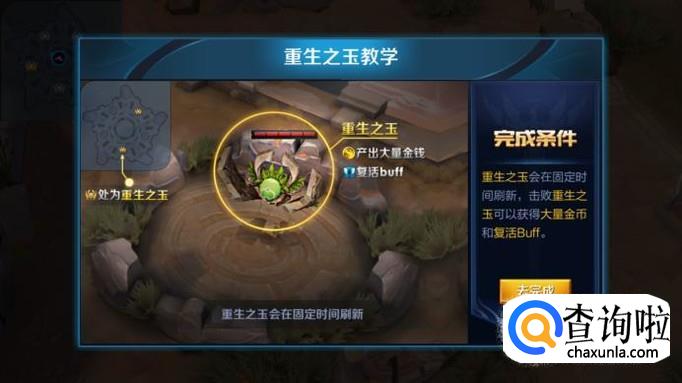 不得不提的就是重生之玉,相当于一个复活甲!在游戏开始两分钟以后,系统就会随机刷新2个大型野怪——重生之玉,击杀他们不仅会得到大量金币还有一个持续60秒的复活buff,在60秒时间内,死亡以后会在原地2秒后复活,血量为最大血量的70%。