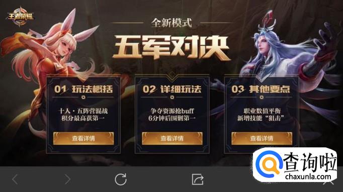 关于游戏玩法的事,小编已经讲了这么多了,其他的就要靠大家在实际操作中慢慢领会啦!毕竟操作才是硬道理啊!进入五军对决的方法很简单,直接进入游戏,在首页上就有五军对决的图标,跟着指示做就ok啦!