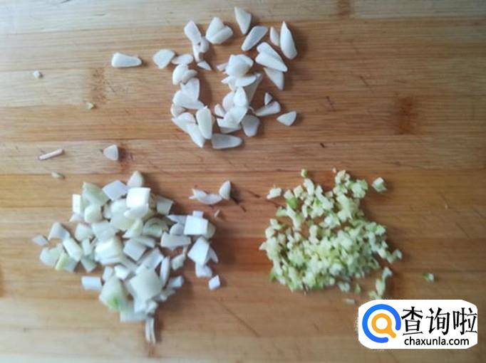 把蒜苗去跟去掉烂叶,清洗干净,斜切成小段。