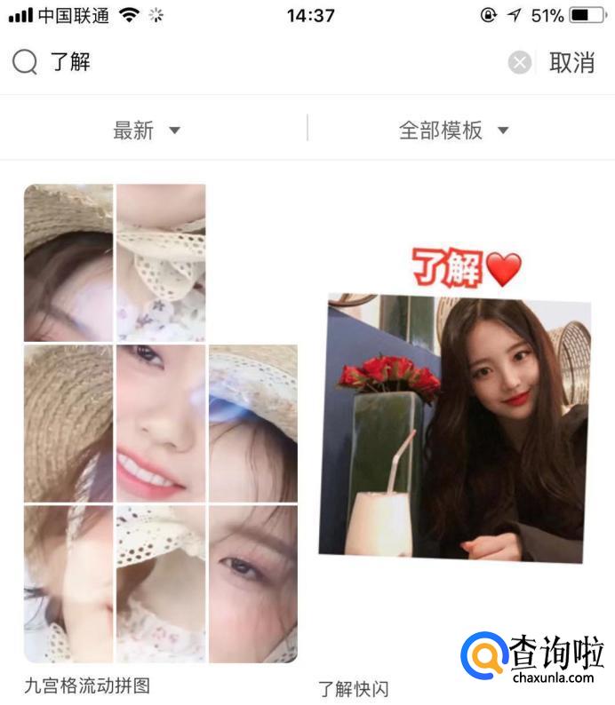 首先打开软件,从首页搜索“了解”找到了解快闪模板。