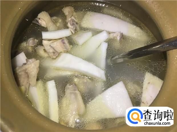 煮鸡汤的时候,大火煮开后,转中小火慢慢炖,大概炖一小时,浓香的椰子鸡汤就做好了,加入少许盐,就可以喝汤了。