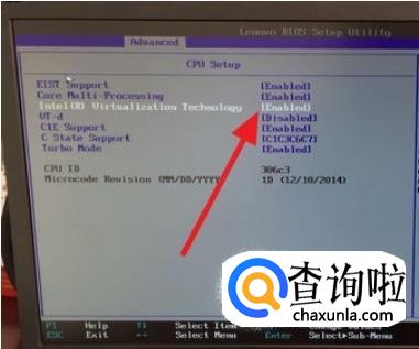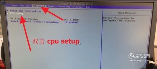通过键盘上的上下左右键盘,选中advanced选项,双击cup setup。