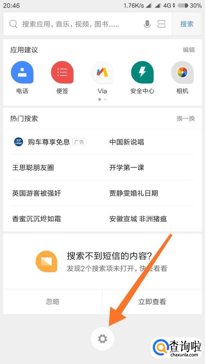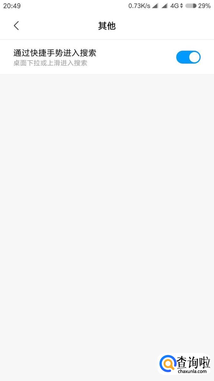 小米手机有一个系统默认的桌面下拉快速搜索的功能,有时候很方便,但是,有时候我们却容易拉到误操作,该怎么关闭呢?