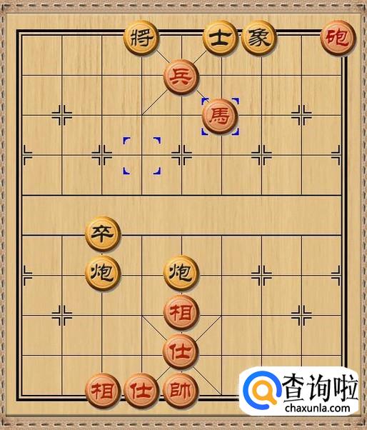 红方马六进四,红方马形成挂角马的态势,对黑方老将进行了限制,同时,给红方过河兵移动提供了支持。如图所示。