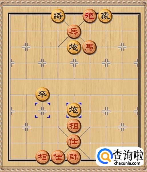 黑方老将发现,由于红方挂角马的支持,红方过河兵随时会向自己发动攻击兵形成绝杀。于是,黑方炮5退4,黑方炮退回到红方马的旁边别住了红方马的马腿,这样,黑方老将在受到红方过河兵攻击时就可以向上移动了。如图所示。