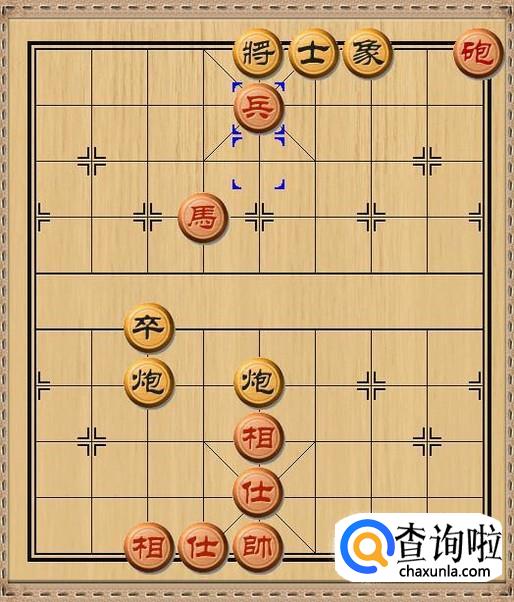 红方先行,红方兵五进一,红方过河兵在红方炮和红方马的策应和支持下,强行杀掉黑方中士,将军。如图所示。