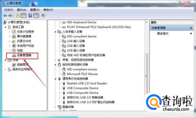 在弹出的【计算机管理】窗口中,点击【设备管理器】,如下图所示: