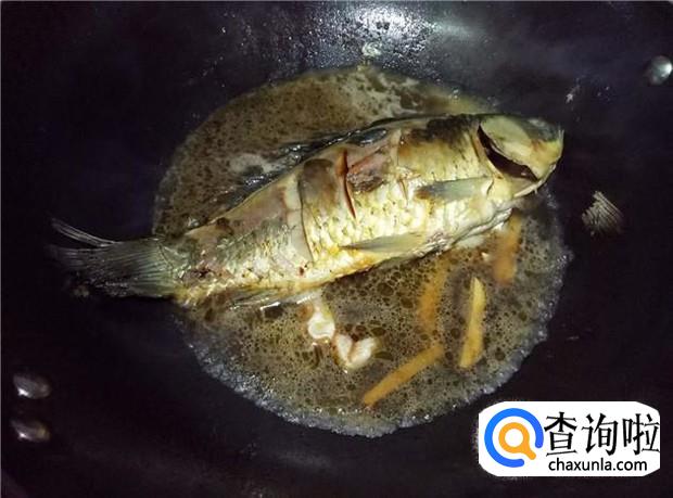 热锅下油,油热后放入腌制好的鲫鱼,小火慢慢煎到鱼两面金黄。
