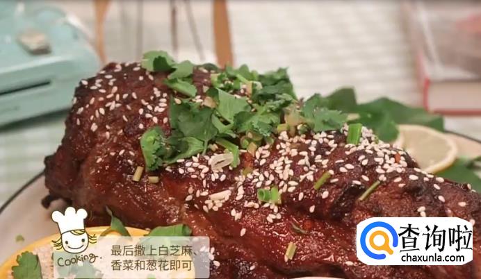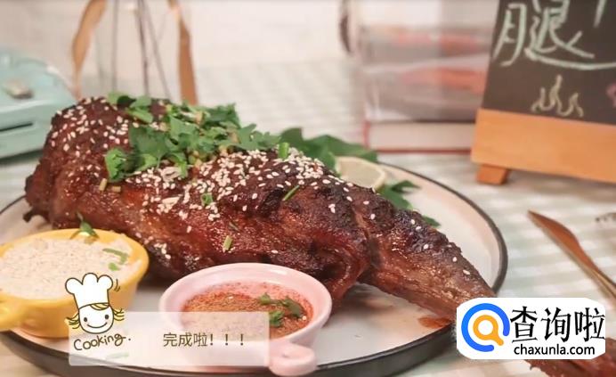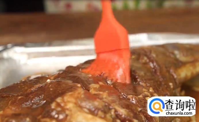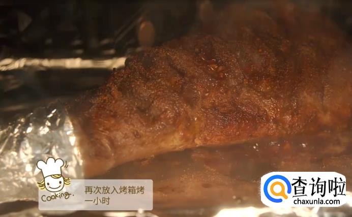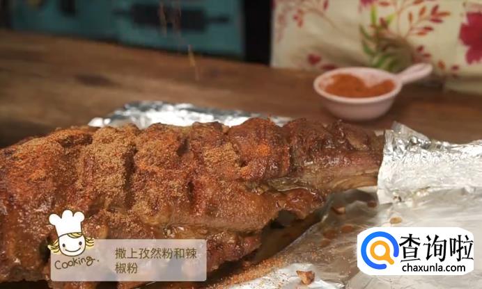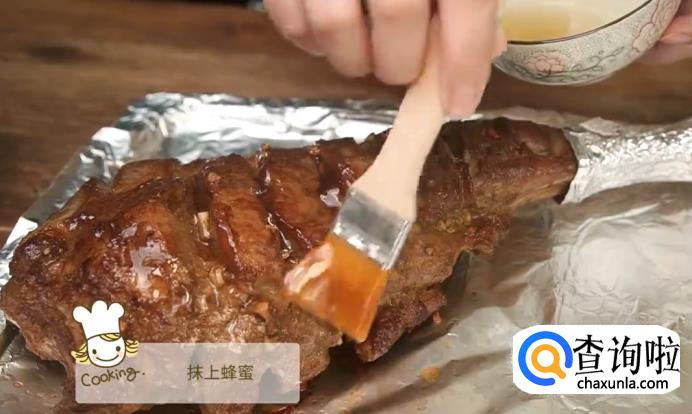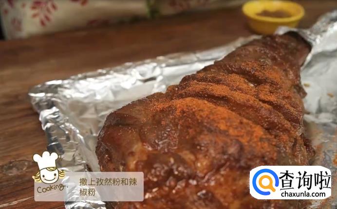 涂抹上一层蜂蜜,辣椒粉和孜然粉,再次送入烤箱烧烤一小时。