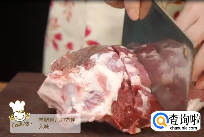 羊腿洗净后,划几道方便入味。