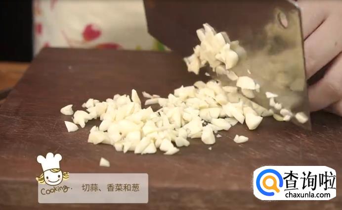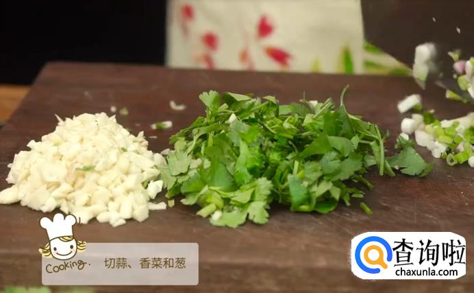 切葱花,大蒜和香菜。