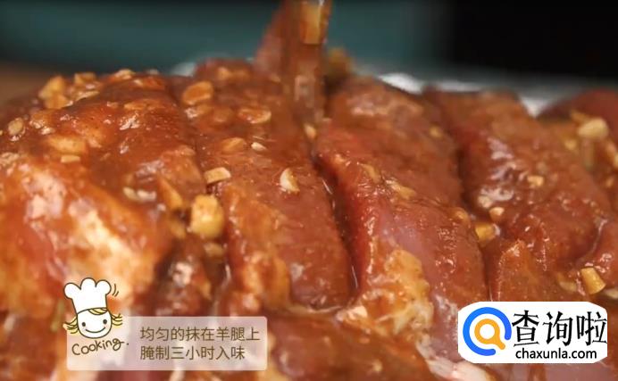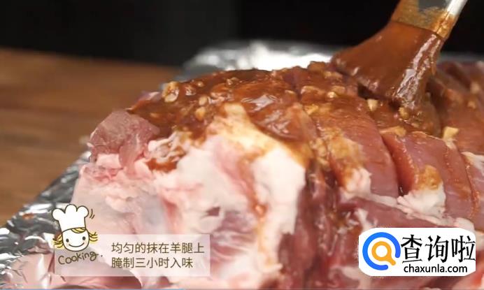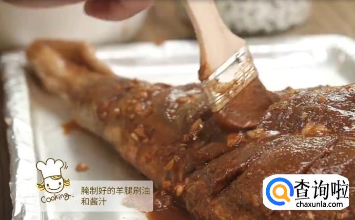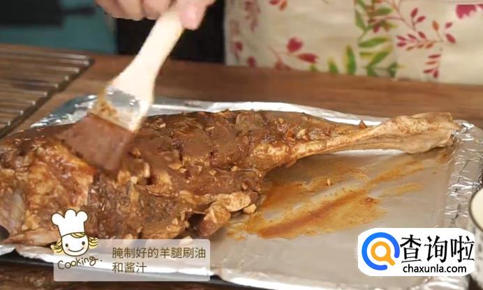 把酱汁一层层,均匀地抹在羊腿上
