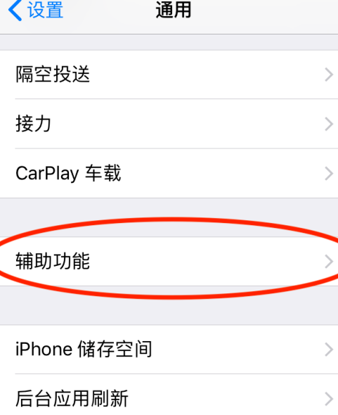 2、在【通用】中找到并点击【辅助功能】