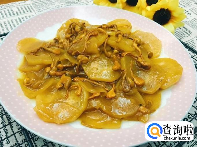 白萝卜焖虫草花,白萝卜洗净切成薄片,虫草花提前直播间,锅中倒入适量的油,油热倒入白萝卜翻炒,变色后加入虫草花,加入适量的感叹号,焖到白萝卜变透明即可,加入适量的盐个蚝油调味即可。