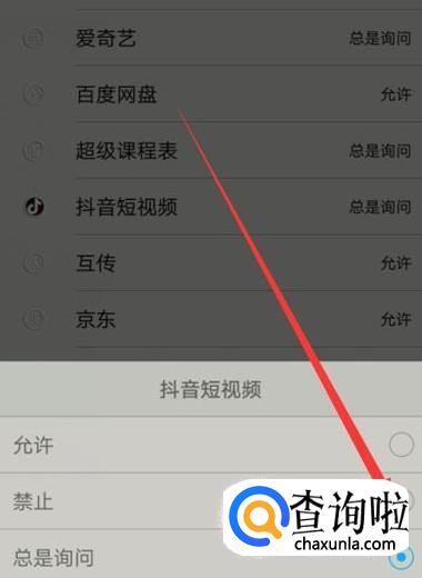 进入之后,将抖音的访问联系人设置为禁止即可,如图所示。
