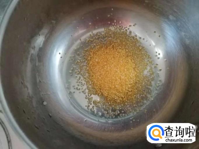 然后我们还可以在抓一把玉米碴子,也是放到盆里用清水清洗干净即可。在清洗玉米碴子的时候我们要注意,如果说里面有什么黑色的物质或者是杂物,要及时挑出来。