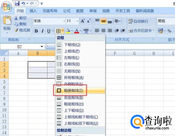 之后我们再点击边框的下拉箭头,弹出的界面,我们点击粗匣线宽;
