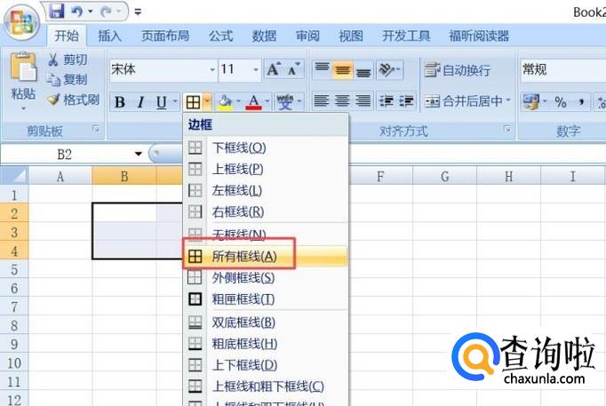 之后我们点击边框边上的下拉箭头,弹出的界面,我们点击所有边框;