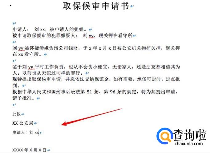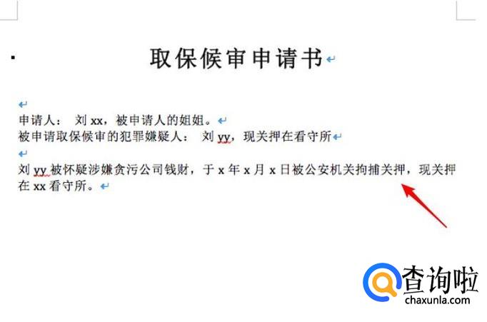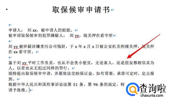 然后重点是要写出取保候审的理由,即写出对方为什么会批准你的申请,可以基于什么的原因,可以申批通过的。并且做出一些保证,比如不会弃保潜逃,并且如有需要会定时,定点报道。范例如图。