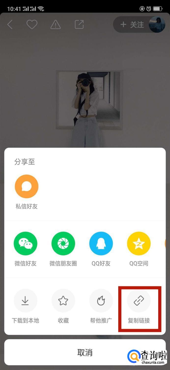 接着点击下方弹出的“复制链接”按钮,复制该视频地址。