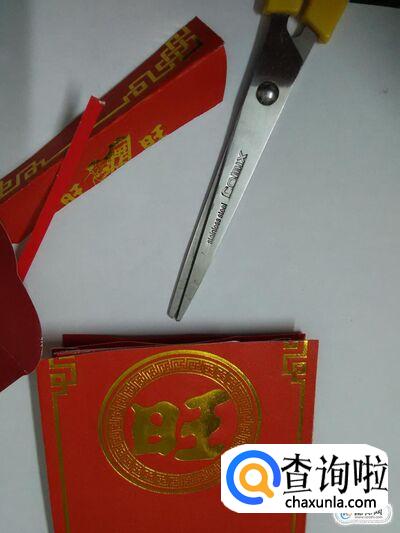 把六个红包的底部对齐,用剪刀将六个红包的上方剪齐,剪成六个一样大的红包。
