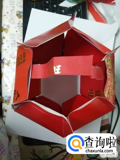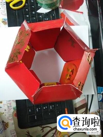再用同样的方法将六个红包相邻的两个三角形全部粘好,粘成灯笼肚。