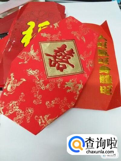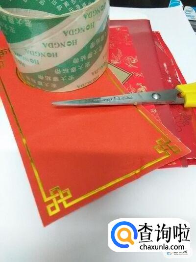 先把两个红包相邻的两个小三角形用胶带粘在一起。