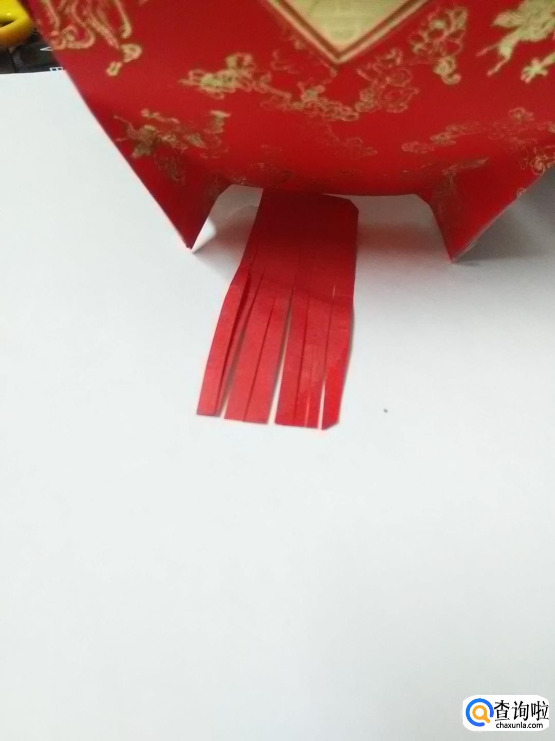 将灯笼穗粘在灯笼肚的下方,红包灯笼就做好了。