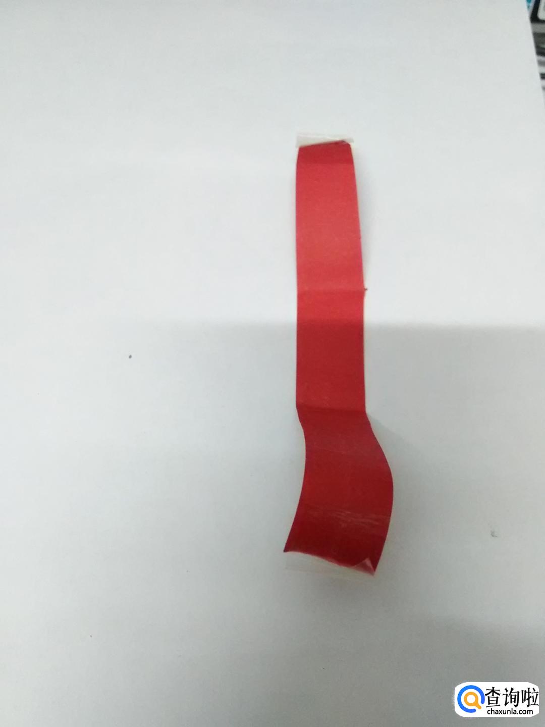 用剪刀在边角料上剪下一个细长条,两端粘上胶带。