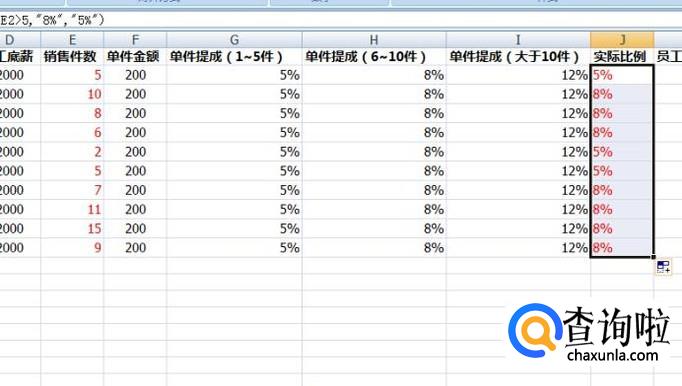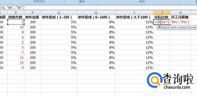 如果要设置有一定阶梯的提成计算表格,我们需要先定出不同的销售件数,能够拿到的提成比例。我们需要用IF条件函数来判断一个业务员实际销售的件数究竟符合哪一个档位的提成比例。