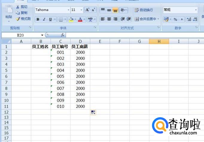 我们先在表格里员工姓名、员工编号、员工底薪等等这些基本的内容,这些内容可以作为模板的内容,因为都是可以提前确定的。