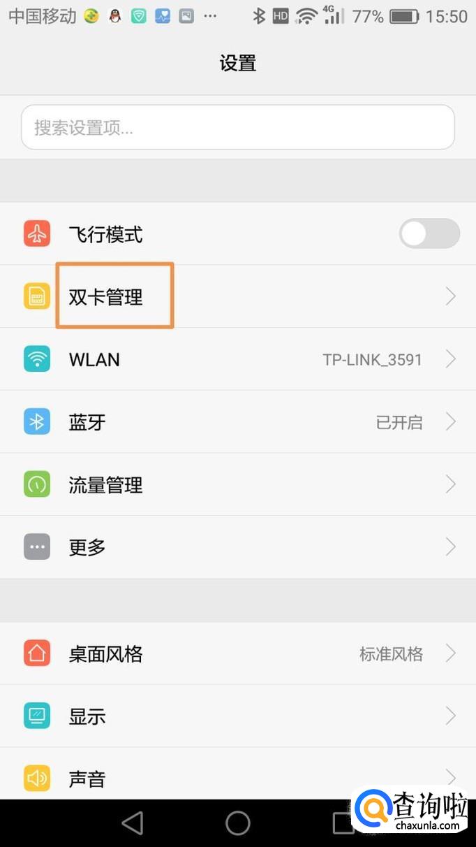 因为需要设置的是手机卡的4G网络,所以在设置界面选择第二栏的“双卡管理”。