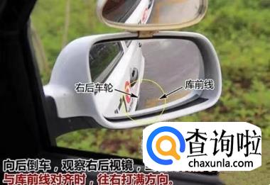 打右转向灯,挂倒挡,缓慢松离合,当车子走动时左脚保持不动。观察右后视镜,当看到右后轮与前库线对齐时,往右打满方向。