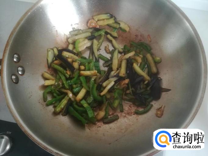 再放入炸好的茄子,豆角,蒜末,继续翻炒均匀即可。